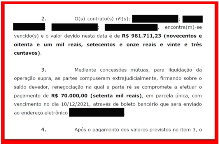 Todo esse cenário é perfeito para que consigamos ótimos acordos. Observe o caso ao lado, que exemplifica uma situação em que conseguimos um desconto considerável na dívida do nosso cliente.